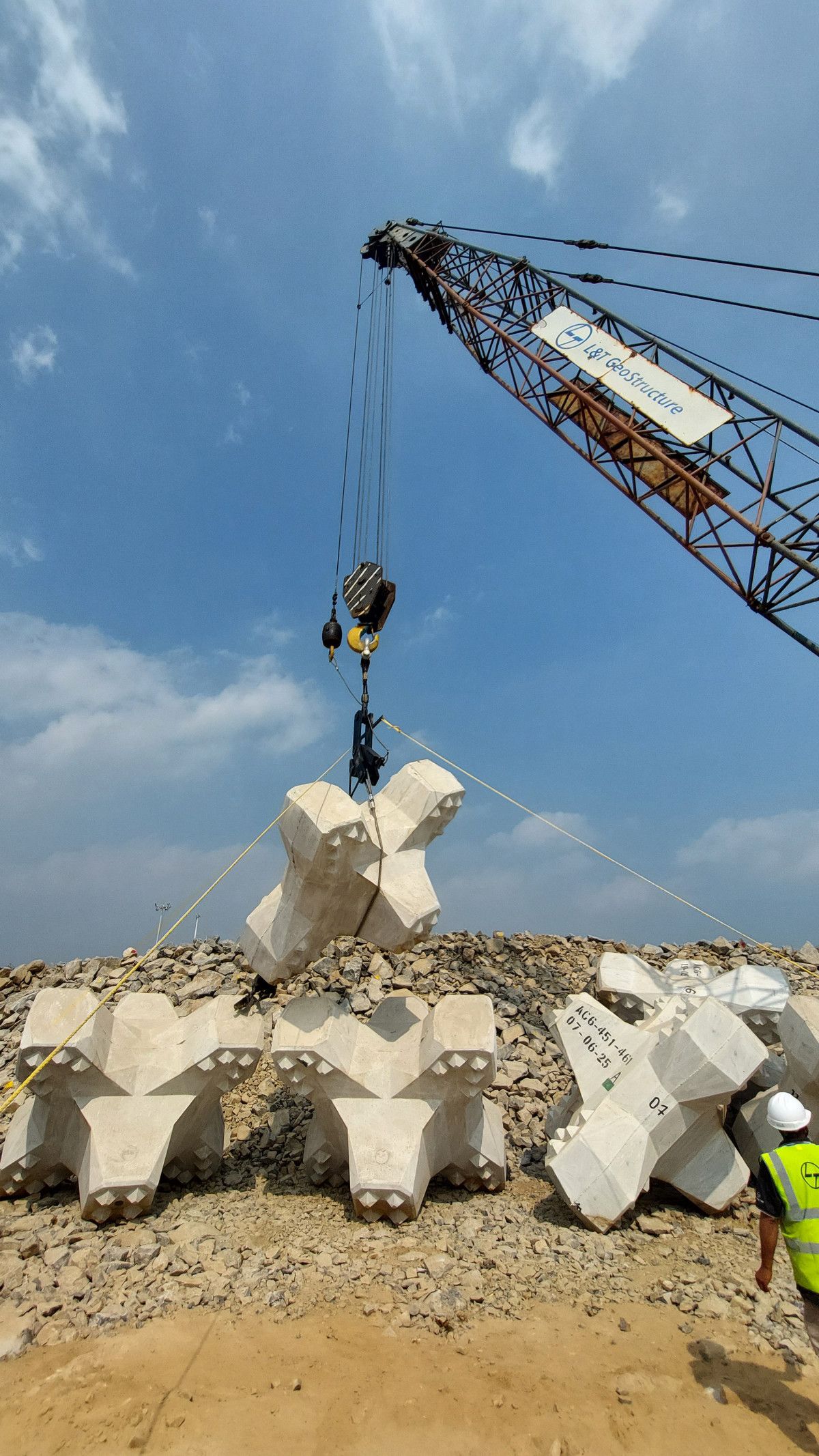 📌 Le développement des infrastructures portuaires et côtières en Inde est, à l’heure actuelle, très importante. CLI Concrete Layer Innovations accompagne beaucoup de ces projets majeurs grâce à ses techniques de blocs monocouche tels que les blocs ACCROPODE™ et ACCROPODE™ II.
